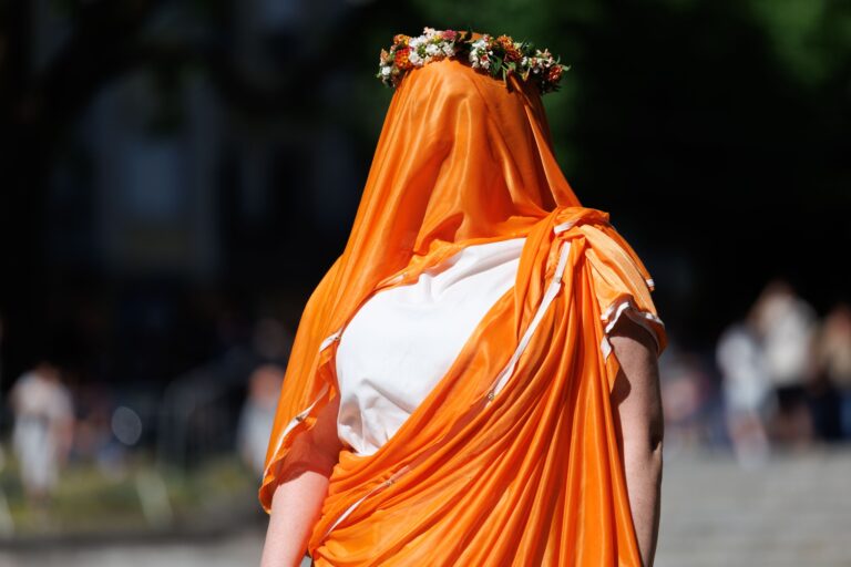 C’est alors un joyeux cortège qui parcourt les rues de la ville. Les invités ou les passants lancent marier des quolibets grivois, censés éloigner le mauvais œil, ou bien jettent des noix, symbole de fécondité, sur leur passage.